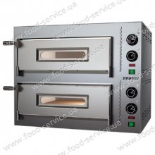 Піч для піци Frosty FPV-202S 2-камерна зі склом. Фасад виготовлений з нержавіючої сталі, корпус з оцинкованої сталі.   Розмір камер: 630х430х180мм. Продуктивність випікання за цикл: 4 піци Ø30мм. Бокова підствітка. 4 термостати. Температура 50...300°C. Розділь..
