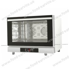 Піч конвекційна Frosty EСS-8A з ручним парозволоженням. Корпус виготовлений з нержавіючої сталі, всередині також з нержавіючої сталі, деко з алюмінію.   4 рівні. Відстань між рівнями 75мм. Температура +50...+300°С. Таймер 120хв. Підсвітка. Верхній нагрів (грил..