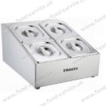 Підставка з нержавіючої сталі вміщає 4 гастроконтейнери розміру GN 1/6 (162х176мм) глубиной 100мм.