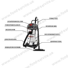 Корпус із нержавіючої сталі і ударостійкого пластику, що робить апарат стійким до жорстких умов роботи - на будівництві, виробництві, в складських приміщеннях, гаражах або дворах приватного будинку. Пиловодосос здатний збирати не тільки пил і дрібне сміття, а й великі, важкі, гострі частинки сміття. А також осушувати поверхні від води і рідин різної консистенції.