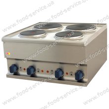 Плита електрична 4-х конфорочна без духової шафи ПЕ-4 призначена для теплової обробки напівфабрикатів: варіння, смаження, тушкування, пасерування в об'єктах громадського харчування. Плити виконані в кліматичному виконанні УХЛ4 згідно ГОСТ 14254. Ступінь захисту IP 21. Плита призначена для д..
