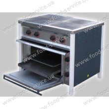 Плита електрична 4-х конфорочна з духовою шафою ПЕ-4Ш Ч  призначена для теплової обробки напівфабрикатів: варіння, смаження, тушкування, пасерування в об'єктах громадського харчування.