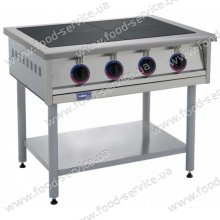 Плита електрична 4-х конфорочна без духової шафи ПЕ-4Ч призначена для теплової обробки напівфабрикатів: варіння, смаження, тушкування, пасерування в об'єктах громадського харчування. Плити виконані в кліматичному виконанні УХЛ4 згідно ГОСТ 14254. Ступінь захисту IP 21. Плита призначена для ..