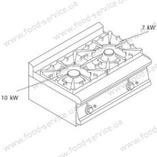 Газові плити настільного виконання CustomHeat TT 4-24 мають 4 квадратні осередки. Основні робочі елементи виробів виконані з нержавіючої сталі і чавуну. Відсічення газу, п'єзопідпал - опційно. Підставка на фото продається окремо ..