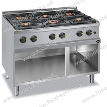 Газова плита на відкритому стенді Apach APRG-117P 700 серії з шістьма конфорками, три з яких мають потужність 3,5 кВт, а три інші - 6 кВт. Знімні газові пальники, виготовлені з глазурованого чавуну, оснащені стабілізатором полум'я.