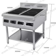 Плита індукційна електрична 4-х конфорочна без духовки, має таймер та цифрову панель. Корпус виготовленний з нержавіючої сталі. Поверхня плити виконана з керамічного скла. Електрозахист від перегріву.   Напруга 380В. Потужність 14кВт. Габарити ДхШхВ 800х700х900мм. Вага 38кг. Країна Китай. ...