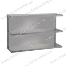 Полка дворівнева КВ 1300х300х350мм виготовлена із нержавіючої сталі. Виробляється як з відкритою, так і з закритою задньою стінкою (по запиту). Полиця кухонна навісна КВ призначена для збільшення корисної робочої площі практично у всіх закладах громадського харчування: від невеликих кафе д..