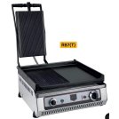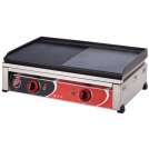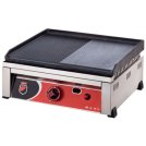 Електричний прилад для приготування їжі на олії або олії. Корпус з нержавіючої сталі, комбінована поверхня з нержавіючої сталі, підданої піскоструминній обробці, термостати для регулювання температури +50°...+270°C, піддон для збору жиру. Існує можливість незалежного регулювання та включення половини поверхні для смаження.