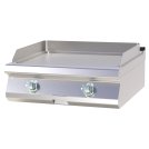Електричний прилад для приготування їжі на маслі або без масла. Корпус з нержавіючої сталі, комбінована поверхня для смаження з нержавіючої сталі, підданої піскострумній обробці, регулювання температури + 50°... + 300°C, піддон для збору жиру. Існує можливість незалежного регулювання і включення половини поверхні.