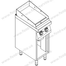 Поверхня для смаження електрична ребриста на відкритій базі. Призначення поверхні - смаження м'ясних, рибних і овочевих страв. Поверхня забезпечена по периметру бортиками для запобігання розбризкування жиру і жирозбірником. Поверхня гладка. Нагрів ТЕНом. Одна зона нагріву. Нерж.стал..