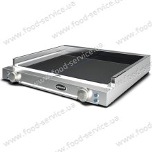 Корпус виконаний з нержавіючої сталі Поверхня для смаження (9 мм) із спеціального загартованого заліза Поверхня з бортиком і піддоном для збору жиру і залишків Поверхня для смаження 518x328 мм, ліва 259 мм - повністю гладка, права 259 мм - рифлена Плавне регулювання температури до 300 ° C..