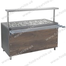 Прилавок холодильний Кий-В ПХ-1500 Д Декор є окремим елементом лінії роздачі і використовується для демонстрації та роздачі охолодженних страв споживачеві в їдальнях, бістро і кафе самообслуговування.