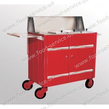 Прилавок пересувний «Хот-дог» електричний ПП-Е СтФ - це комплексне рішення у вигляді готового торгового пересувного прилавки на колесах для приготування та продажу хот-догів. Даний прилавок працює від мережі 220В. Прилавок пересувний «Хот-дог» електричний ПП-Е СтФ є відмінним рішенням для вуличної торгівлі фаст-фуд.   Комплектація та особливості: одна ємність з підігрівом; одна фритюрниця на 5л; одна ємність без підігріву (для салату); разігрів (приготування) сосисок і булочок водяною парою; один відкидний столик (полиця) із нержавіючої сталі; регулювання потужності нагріву; робоча столешня з нержавіючої сталі для зручності розміщення аксесуарів, дозаторів для соусів, щипців, серветок тощо; прилавок видачі заказів з нержавеючої сталі; кронштейн і отвір у столешні для кріпления зонта (зонт в комплект не входить); металевий фарбований корпус (базовий червоний колір, але при замовленні краще уточнити); надійні колеса - 4шт .; двоє дверцят з окремими відсіками для зберігання продуктів та приладдя (закриваються на ключ). Рекламна ...