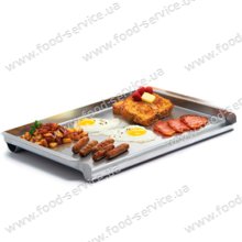 Прямокутне деко виготовлене з товстостінної нержавіючої сталі 1,8 мм. Варильна поверхня 45 * 31 см, одночасно можна готувати кілька страв.