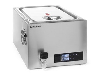 стаціонарний Термостат: він буде підтримувати постійну температуру води для приготування їжі за рахунок циркуляції води крізь нагрітий ТЕН в приладі. Занурювальні термостати схожі на звичайний занурювальний кип'ятильник, але оснащені функціональним корпусом, пристроєм точного контролю заданої температури і пропелером, який здійснює ефективну циркуляцію води, а також регульованими гвинтовими зажимами або прищіпками, які легко прикріплюються до контейнера або каструлі з водою.