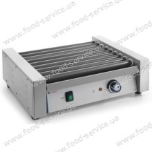 Роликовий гриль призначений для обсмажування сосисок, сардельок, ковбасок. Використовується в підприємствах фаст-фуда, обсмажуючи сосиски надає їм чудовий смак. Відмінними характеристиками роликового гриля є: • тефлонове покриття роликів; • виконаний з нержавіючої сталі; ; • терморегулятор дозволяє встановлювати температуру від 30 до 105 ° С; • знімний жирозбірник; • робоча поверхня: 9 роликів довжиною 42см з спеціальним покриттям для запобігання прилипання продукту. Максимальна температура роликів залежить від таких факторів як: температура навколишнього середовища, потужність розетки, побутова навантаження і рух повітря.