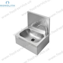 Рукомийник 1-секційний з керуванням бедром Monolith ARES058 виготовлений з нержавіючої сталі. Активно застосовується в закладах громадського харчування, кафе, ресторанах і т.п.  Має пристінний борт і глибину раковини ___мм.