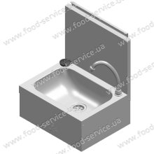 Рукомийник 1-секційний з керуванням бедром Berg виготовлений з нержавіючої сталі. Активно застосовується в закладах громадського харчування, кафе, ресторанах і т.п.  Має пристінний борт і глибину раковини 190мм. Рукомийник кріпиться вертикально на стіну. Рукомийник має змішувач, ..