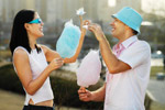 Цукрова вата - найулюбленіші ласощі малюків усього світу. Але цукрову вату люблять не тільки діти. Ароматний полуничний сюрприз цілком можна піднести коханій дівчині на романтичній прогулянці - скласти пікантний солодкий букет з трьох смаків - апельсина (помаранчева куля), ожини (синя куля) і м'яти (зелена куля). І з таким незвичайним подарунком освідчитися в коханні.