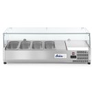 Вітрина холодильна EFC VRX1800/330FG (пряме скло) під 8хGN1/4 (в комплект не входять) є практично ідеальним варіантом для піцерій і призначені для короткочасного зберігання і демонстрації, попередньо охолоджених продуктів (салатів, закусок, гарнірів) в магазинах, кафе, барах, ресторанах, суші-бар..