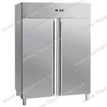 Полиці виготовлені з металу.    Відносна вологість: 65%. Діапазон температури навколишнього середовища: +16 до +30 °С. Загальний об'єм 1300 л. Замок. 6 полиць GN 2/1. Климатичний клас: 4. Освітлення: LED. Потужність: 0,75 кВт. Розмір полок: 650х530 мм. Динамічна система охолодження. Температура від -2 до +8 °C. Доводчик дверей. Цифровий термостат. Авторозморожування. Всередині і зовні нержавіюча сталь. Холодоагент R290. ...