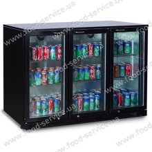 Корпус виготовлений з нержавіючої сталі.   Загальний об'єм 320 л. 6 полиць. Країна виробник: Китай. Освітлення: LED. Потужність: 0,135 кВт. Динамічна система охолодження. Температура від 0 до +8 °C. Розпашні автоматичні двері. Чорний колір. Цифровий термостат. Загартоване скло. Холодоагент R600a. ...