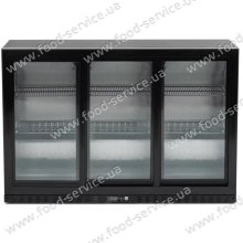 Корпус виготовлений з нержавіючої сталі.   Загальний об'єм 320 л. 6 полиць. Країна виробник: Китай. Освітлення: LED. Потужність: 0,135 кВт. Динамічна система охолодження. Температура від 0 до +8 °C. Розсувні автоматичні двері. Чорний колір. Цифровий термостат. Загартоване скло. Холодоагент R600a. ...