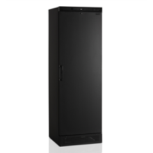Шафа холодильна для вина Tefcold SC85 BLACK виготовлена з фарбованого металу, з тонованими скляними дверима, механічним пультом управління та регульованими ніжками використовується в готелях, ресторанах та кафе для демонстрації і продажу товарів.   ..