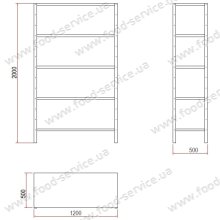 Стелаж з 5-ма неперфорованими полицями, які можна регулювати по висоті, розміром 1200х500мм, виготовнений з нержавіючої сталі.    Габарити нетто ДхШхВ 1200х500х2000мм. Вага нетто 20кг. Країна Італія.   ...