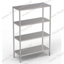 Полиці виконані з харчової нержавіючої сталі 0,8мм. Каркас виконаний з харчової нержавіючої сталі 1мм. Регулювання по висоті: +/-25мм.   Додаткова комплектація: - посилена полиця; - додаткові ноги для збільшення навантаження; - збільшення чи зменшення к-ті поличок..