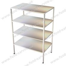 Полиці виконані з харчової нержавіючої сталі 0,8мм. Каркас виконаний з харчової нержавіючої сталі 1мм. Регулювання по висоті: +/-25мм.   Додаткова комплектація: - посилена полиця; - додаткові ноги для збільшення навантаження; - збільшення чи зменшення к-ті поличок..