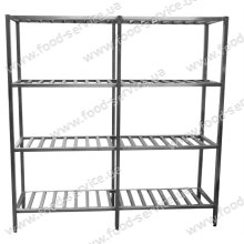 Стелаж виробничий 4 полиці (ребро по довжині) 1200х400х1800мм (ніжки приварені по торцях) 4S6.   Призначений для викладки продуктів в холодильних і морозильних камерах, посуду в мийних відділеннях на професійних кухнях, активно застосовуються на складах. Стелажі розташовуют..