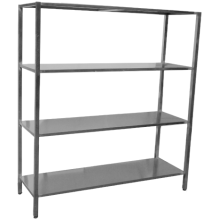 Стелаж кухонний VEK 600х400х1800 AISI-430 4 полиці з нержавіючої сталі марки 430 призначений для організації порядку на кухні в ресторанах, кафе, барах, виробничих цехах для зберігання посуду, продуктів, інвентарю. Стелажі розташовуються між основним технологічним обладнанням і забезпечують безперешкодний і своєчасний доступ працівників до необхідної сировини та інвентарю. Стелажі стійкі до високих температур гарячих сковорідок, крижаної води, миючих речовин і механічних ударів по поверхні. Вироби естетичні, гігієнічні і довговічні.