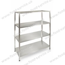 Полиці виконані з харчової нержавіючої сталі 0,8мм. Каркас виконаний з харчової нержавіючої сталі 1мм. Регулювання по висоті: +/-25мм.   Додаткова комплектація: - посилена полиця; - додаткові ноги для збільшення навантаження; - збільшення чи зменшення к-ті поличок..