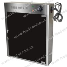 Країна Китай.   Габарити: 500x150x615мм. Метод обробки: ультрафіолет. Корпус виконаний з нержавіючої сталі, дверцята з пластику. Місткість: 12 ножів. Час обробки до 60хв. Потужність 10Вт. Напруга 220В. Вага: 5,5кг. ...