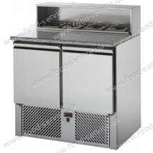 Стіл для піци з гранітної стільницею і салат-баром Tecnodom SL02AI - використовується в кафе, барах, ресторанах для приготування піци. Всередині столу зберігаються тістові заготовки і проходять процес ферментації, на гранітній стільниці готують краст і укладають начинку, а в охолоджувальній вітрині зберігається сама начинка.