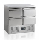Стіл-саладетта SA914   Нержавіюча сталь Автовідтаювання Електронний контролер Термометр 4 висувні ящики GN1/1 Регульовані ніжки Вентильоване охолодження Корисний об'єм 230л ..