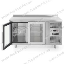 Дводверний холодильний стіл з бічним розташуванням агрегату Hendi 233429 з скляними дверима і нержавіючою стільницею призначений для роботи в температурному діапазоні +2 ... + 8С.