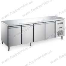 Стіл холодильний GoodFood GF-S903TOP-HC використовується для зберігання продуктів. Корпус та стільниця виготовлені з нержавіючої сталі.   Холодильний агрегат знаходиться знизу. Кліматичний клас: 4. Клас енергоспоживання: E. Компресор: Cubige. Термостат: Carel. ..
