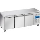 Холодильний стіл GN3100TN - використовується в кафе, барах, ресторанах для охолодження готових страв. - вбудований агрегат, який виймається для обслуговування. - електронний цифровий термостат. - підігрів по контуру дверей для усунення конденсату. - автоматичне розморожування нагрівачем..