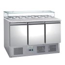 Стіл-саладетта холодильний тридверний GoodFood GF-PS903GT-HC використовується для роботи з тістом та зберігання продуктів. Стільниця виготовлена з граніту.   Оснащена прямим склом. Глибина робочої поверхні 465 мм. Корпус та внутрішня камера виготовлені з нержавіючої сталі..