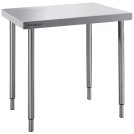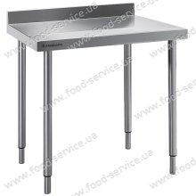 Стіл виробничий пристінний виготовлений з нержавіючої сталі, витримує навантаження до 150кг/м2, має стільницю товщиною 54мм та ніжки з круглої труби діаметром 50мм, що регулюються по висоті.