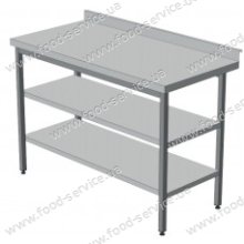 столи кухонні виробничі виготовляються в чотирьох варіантах виконання; можливе виконання з об'ємним пристінним бортом з нержавіючої сталі, з полицею і без полки; стільниця виконана з нержавіючої стал...