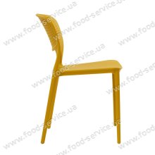 Пластиковий стілець SPARK жовтого кольору - модель в сучасному стилі. Спинка має цікаву текстуру - вона перфорована, тому відмінно провітрюється і навіть в сильну спеку сидіти на стільці буде комфортно.