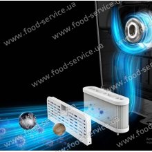Сушарка для рук оснащена системою стерилізації ультрафіолетом, яка знищує бактерії, та вдосконаленим 2-ступеневим HEPA-фільтром, що затримує 99,97% часток шкідливих речовин та мікробів розміром 0,3 мікрона.