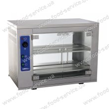 Для зберігання, підігріву та демонстрації вже приготовлених курей (або інших продуктів), використовується теплова вітрина. У такого роду вітринах продукт не підсихає і залишається соковитим, не втрачаючи своєї ваги. Також вітрина дозволяє вигідно демонструвати продукт. Дверцята виконані зі скла за принципом "купе", задня стінка також скляна. Температура всередині вітрини підтримується автоматично. Під нижню полицю можна встановити лоток з водою для увлажненія.Ізделіе виготовлено з харчової нержавіючої сталі. Дві великих полиць дозволяють розмістити до 6-ти курей на кожній.