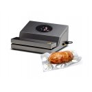 Індикаторна панель управління. Корпус виконаний з нержавіючої сталі. Електроклапан для швидкого відкривання планки, вакуумний насос з сухим ущільненням. Одинарний зварювальний шов. Автоматичне відключення. Для упаковки використовуються гофровані пакети.