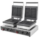 Вафельница производится с квадратными ячейками на 4 вафли. Основные рабочие элементы изделий выполнены из нержавеющей стали и чугуна. Имеют 2 пары рабочих поверхностей, каждая из которых имеет независимое управление; нагрев осуществляется одновременно сверху и снизу; терморегулятор позволяет устанавливать температуру от 0 до 300ºС; корпус выполнен из нержавеющей стали; рабочие поверхности изготовлены из чугуна; ручки выполнены из термостойкого материала.