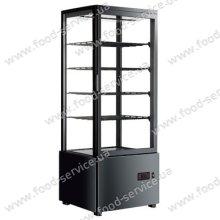 Вітрина холодильна GoodFood RT78L чорна призначена для демонстрації прохолодних напоїв, пляшок з водою і ін. Вітрина являє собою виконану з пластика 78 літрову охолоджувальну камеру з прозорими стінками, виконаними з подвійного склопакета з 4-х сторін, чорного кольору. Для кращої демонстрації..