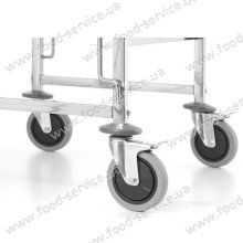 4 поворотні гумові колеса Ø 100 мм (у тому числі 2 з гальмом) поглинають вібрації.